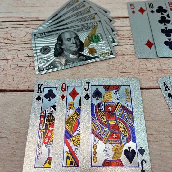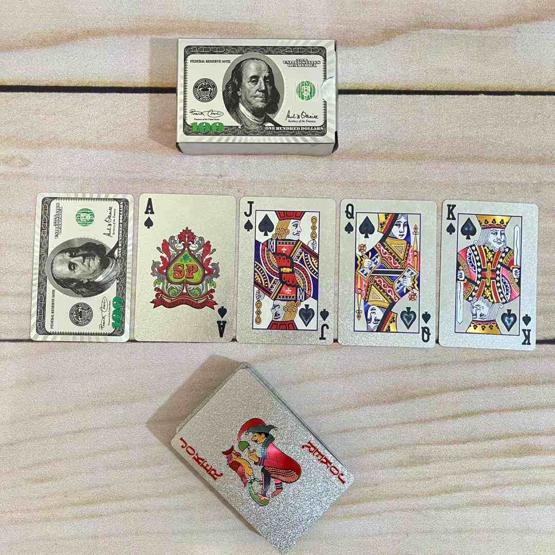 ورق بازی دلار نقره ای اکلیلی شناسنامه دار برخور عالی چاپ پررنگ جنس پلاستیک قابل شستشو