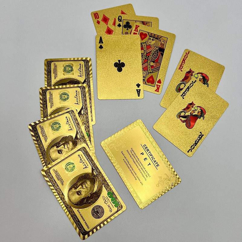 ورق بازی دلار طلایی اکلیلی شناسنامه دار برخور عالی چاپ پررنگ جنس پلاستیک قابل شستشو