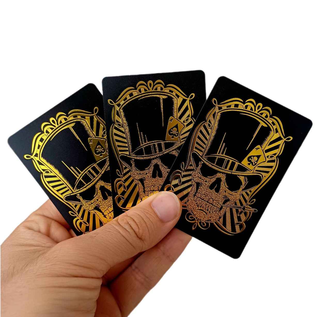 ورق بازی زیبای هودینی طراحیه جذاب اکلیلی مشکی و طلایی دورو روغنی قابل شستشو جنس پلاستی مناسب بازی هدیه شعبده و کلکسیون